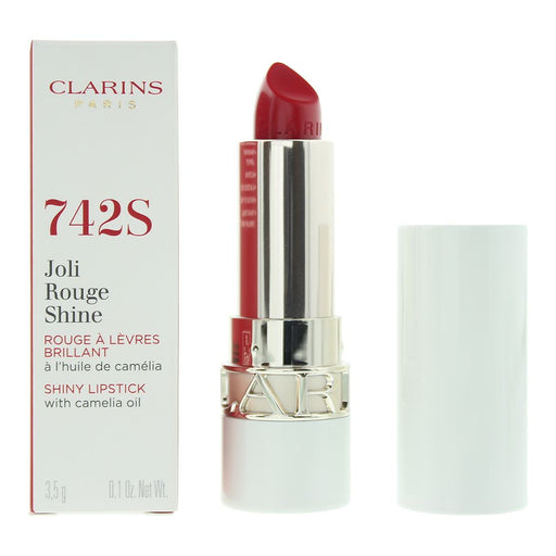 Clarins Joli Rouge Shine 742 S Pretty Red Lipstick - 4g Experience the perfect blend of luminous color and nourishing hydration with Clarins Joli R...